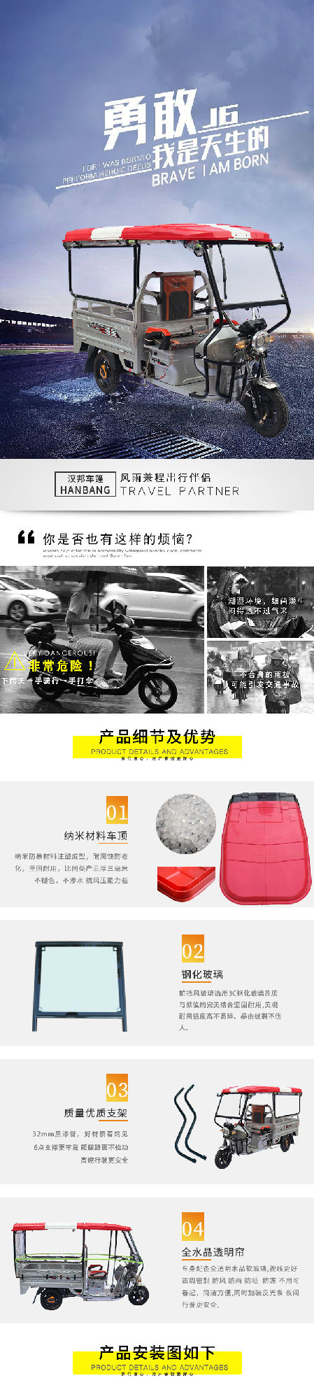 安裝三輪摩托車車篷,只需五步!